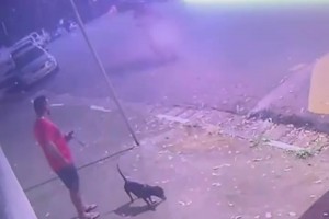 巴西一警察遛狗时遭遇劫匪,双方近距离交火!!